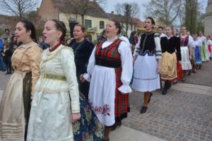 Ön itt áll: Kezdőlap / 18. Tatai Sokadalom / Karikázó Tatán a Kossuth téren – 100 VIRÁGSZÁL VASÁRNAPJA képekben / Böjti Karikázó
